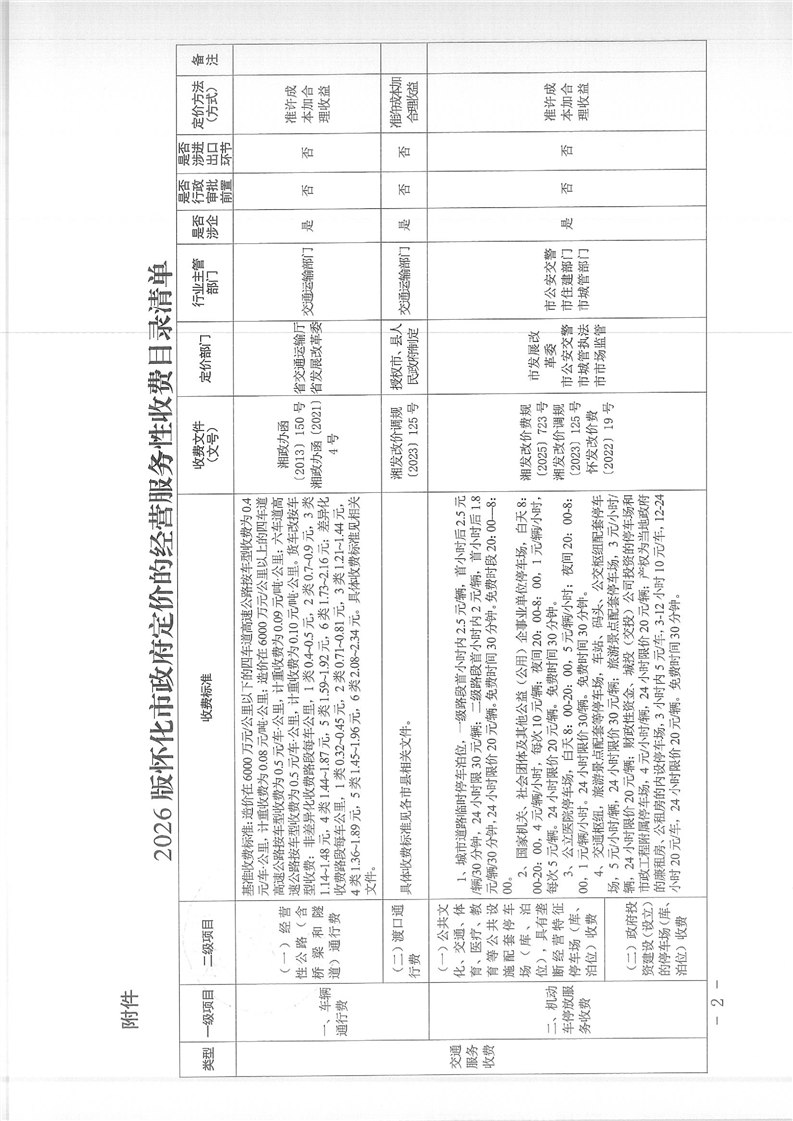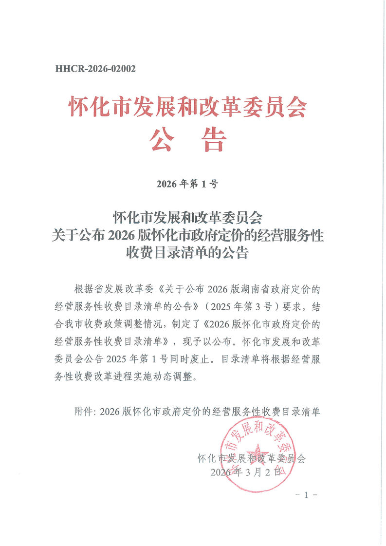 懷化市發(fā)展和改革委員會(huì)關(guān)于公布2026版懷化市政府定價(jià)的經(jīng)營服務(wù)性收費(fèi)目錄清單的公告