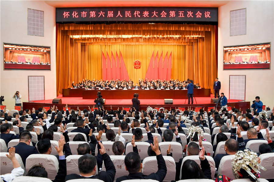 大會以舉手表決的方式,通過了懷化市第六屆人民代表大會有關(guān)專門委員會組成人員名單。