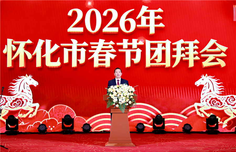 許忠建在致辭中說,剛剛過去的2025年是“十四五”收官之年。我們堅持以習近平新時代中國特色社會主義思想為指導,深入學習貫徹習近平總書記關(guān)于湖南工作的重要講話和指示批示精神,全面貫徹落實黨中央決策部署和省委、省政府部署要求,緊緊錨定“三高四新”美好藍圖,深入實施“五新四城”戰(zhàn)略,奮起“二次創(chuàng)業(yè)”,迎難而上、砥礪奮進,實現(xiàn)“十四五”圓滿收官,鞏固和保持了追趕上升的發(fā)展勢頭,懷化發(fā)展翻開了嶄新篇章。一年來,我們搶抓機遇、厚植優(yōu)勢,全力謀劃未來發(fā)展新戰(zhàn)略,提出“奮力建設五省邊際區(qū)域性中心城市”的總目標。一年來,我們攻堅克難、乘勢而上,合力創(chuàng)造高質(zhì)量發(fā)展新業(yè)績,全市經(jīng)濟運行總體平穩(wěn)、向新向好,懷化國際陸港成型成勢,“5+10”現(xiàn)代化產(chǎn)業(yè)體系建設取得新成效、呈現(xiàn)新氣象,鶴中一體化發(fā)展取得重大進展,文旅融合發(fā)展出圈出彩。一年來,我們堅守初心、篤行不怠,奮力書寫保障和改善民生新答卷,解決了一批“一老一小”等群眾急難愁盼問題,攻克了一批多年來想解決而沒有解決的難事,老百姓的獲得感成色更足、幸福感更可持續(xù)、安全感更有保障。