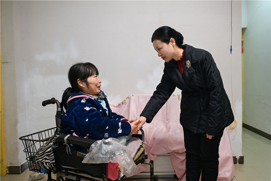 (2月11日上午,市委副書(shū)記、市長(zhǎng)韋朝暉看望慰問(wèn)困難婦女陽(yáng)海鷹。懷化日?qǐng)?bào)全媒體記者 吳濤 攝)