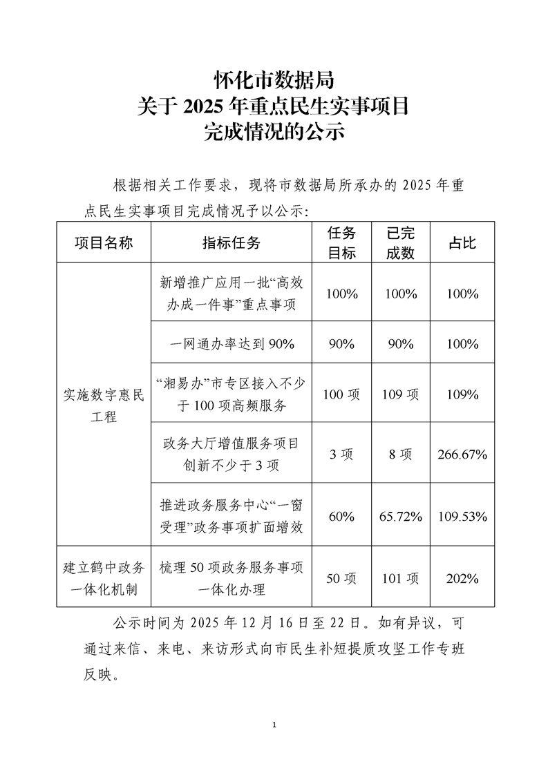 懷化市數(shù)據(jù)局關(guān)于2025年重點(diǎn)民生實(shí)事項(xiàng)目完成情況的公示
