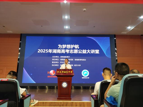 為深入貫徹湖南省高考綜合改革政策,切實解決考生及家長志愿填報難題,6月22日上午,由湖南省教育考試院、湖南教育電視臺聯(lián)合組織,懷化市教育局主辦的《2025湖南高考志愿公益大講堂》懷化專場在懷化市湖天中學(xué)舉行,600余名考生及家長現(xiàn)場參與,活動同步進(jìn)行網(wǎng)絡(luò)直播,線上觀看人數(shù)突破2萬人次。懷化市教育局黨組成員、副局長王長斌出席活動并講話。