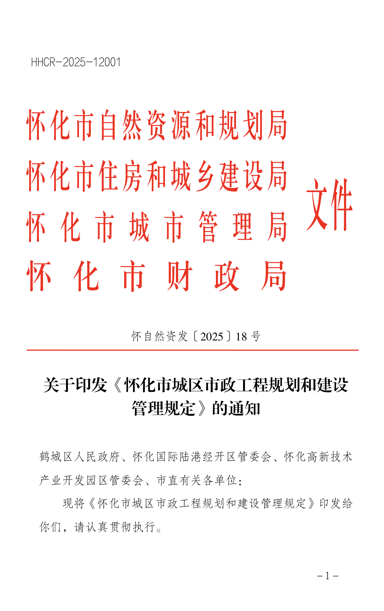 關(guān)于印發(fā)《懷化市城區(qū)市政工程規(guī)劃和建設(shè)管理規(guī)定》的通知